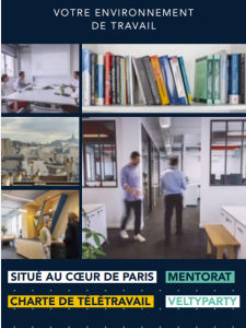 Chez Veltys, la journée de travail de stagiaire commence généralement vers 9:30 pour s’achever vers 18:00, avec une pause déjeuner et quelques arrêts au stand café & fruits frais ! Tu pourras également télétravailler un jour par semaine dès la fin de ton premier mois de stage.